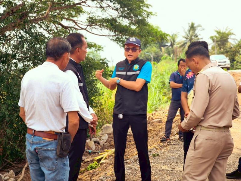ลงพื้นที่ตรวจติดตามถนนสายเลียบคลองวัดทุ่ง หมู่ที่ ๖ ที่เกิดการทรุดตัว