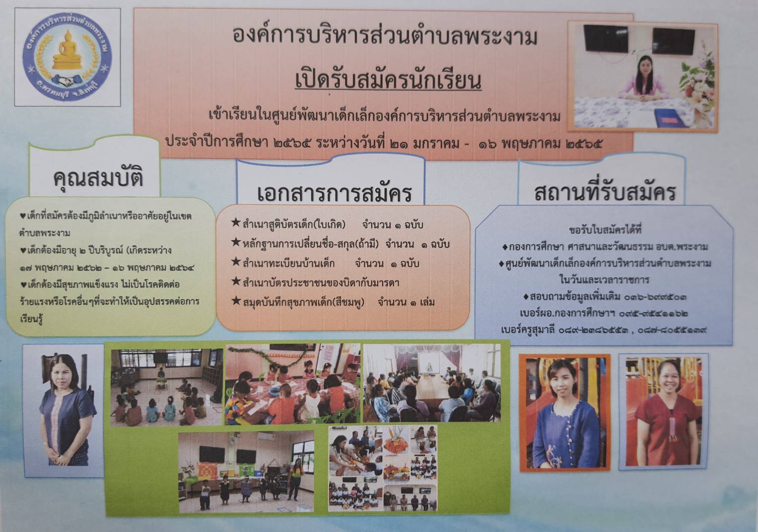 ข่าวประชาสัมพันธ์ ศพด.อบต.พระงาม เปิดรับสมัครนักเรียน ประจำปีการศึกษา 2565