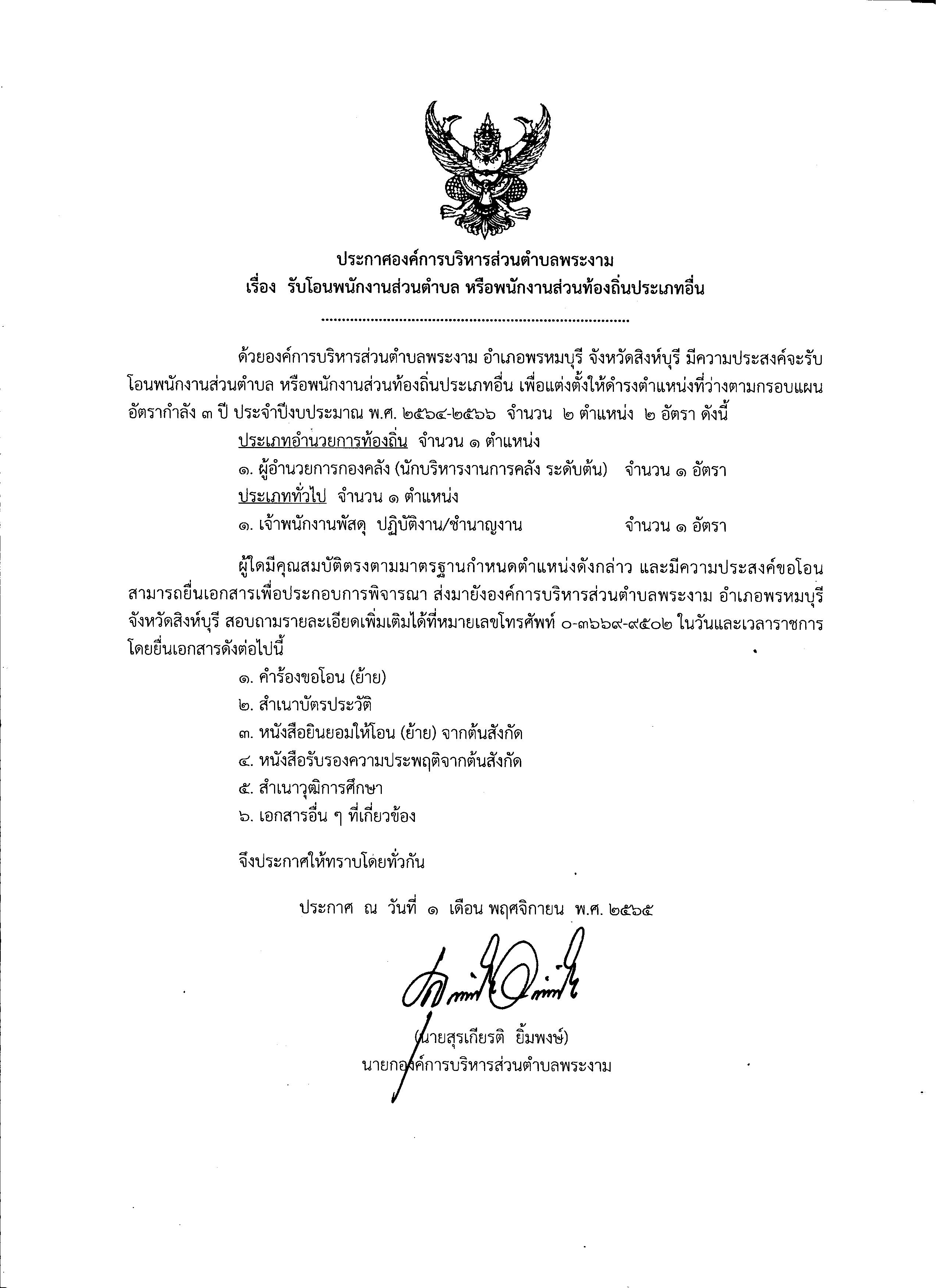 อบต.พระงาม รับโอนพนักงานส่วนตำบล หรือพนักงานส่วนท้องถิ่นประเภทอื่น