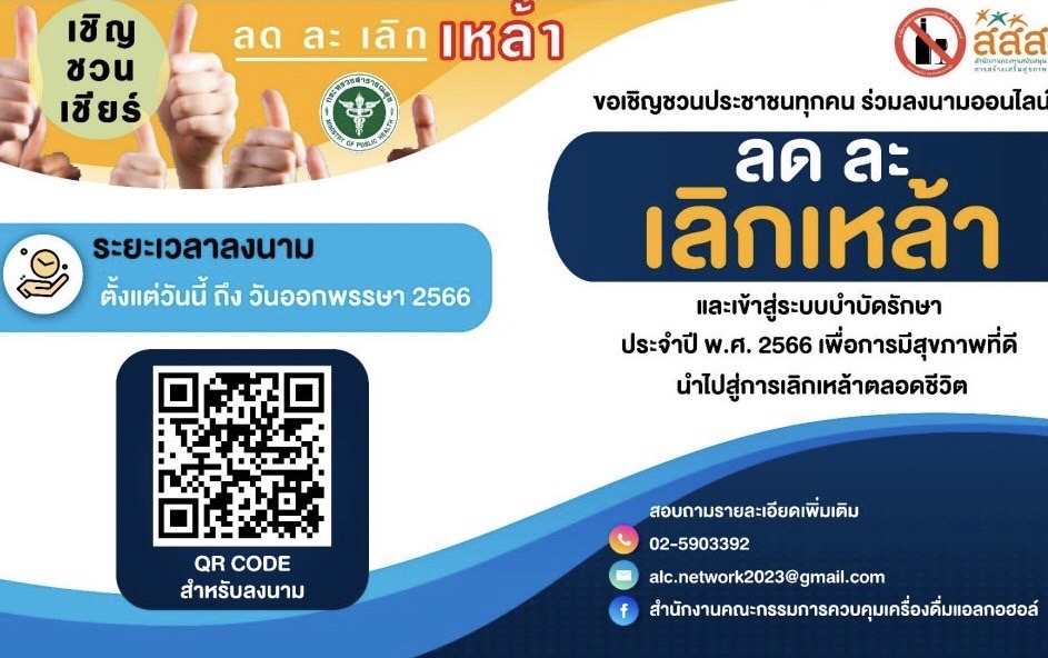 ชื่อเรื่อง : ขอเชิญชวนประชาชนทุกคน ลงนามออนไลน์ ปฏิญาณตนงดเหล้า ลด ละ เลิกเหล้า และเข้าสู่ระบบบำบัดรักษา ประจำปี พ.ศ.2566